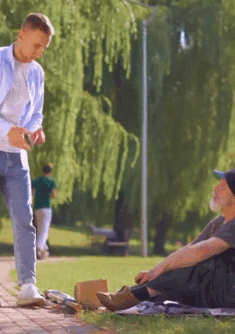 노숙자에게 돈 대신 생수를